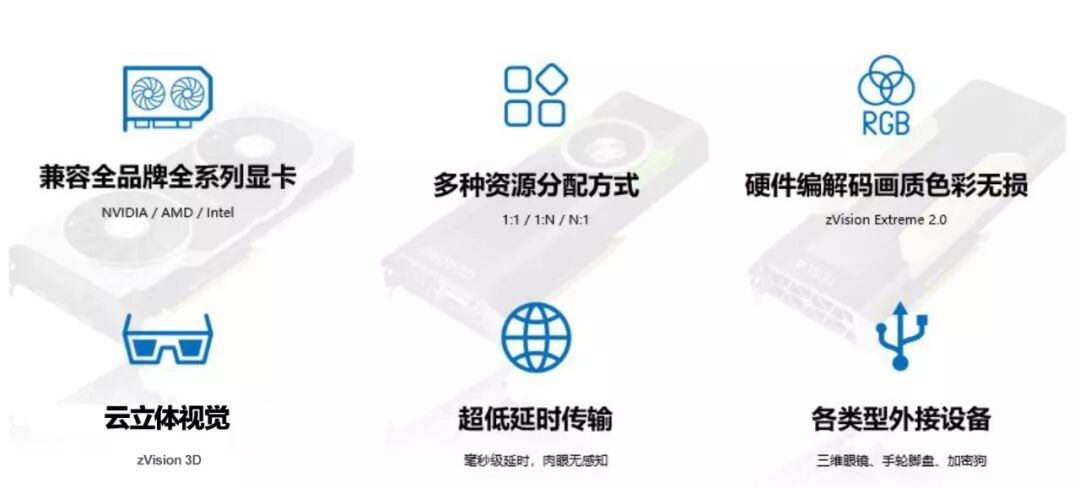“云端的图形工作站,本地一致的使用体验。”这是zVision一直在追求的目标。为了确保满足更多的应用场景,zVision率先兼容市面上主流的全系列显卡。GPU运算能力上云后,为了确保可以获得和本地一致的使用体验,桌面传输协议又是重中之重。zVision使用全硬件的编解码方式,从而获得了很低的延迟,用户几乎无感知。针对目前市面上硬件视频解码的缺陷,zVision实现了基于硬件的色彩无损编解码算法,低延迟的同时,也可以获得和本地一致的真实色彩体验。